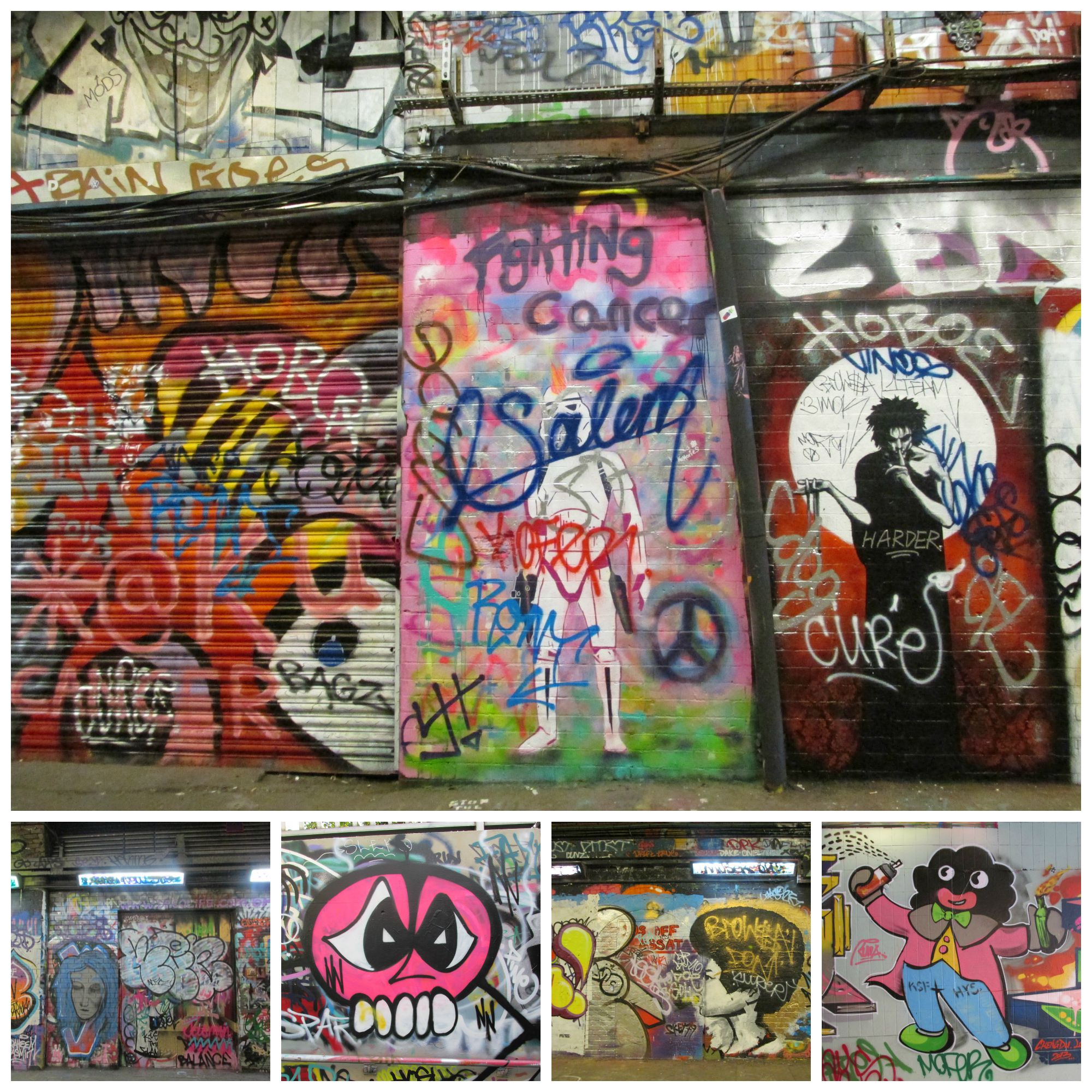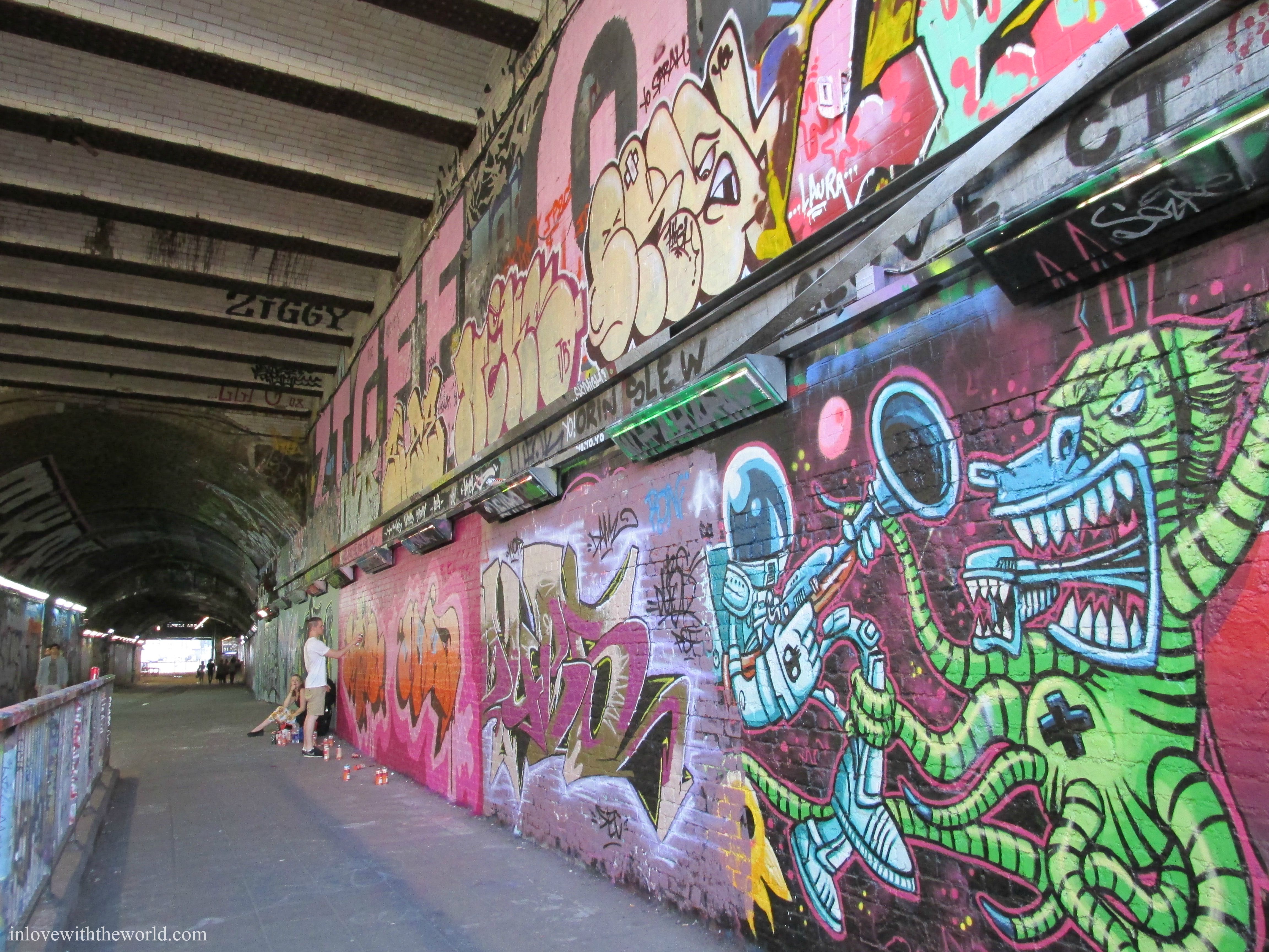 This is Leake Street, otherwise known as The Graffiti Tunnel in London. It is legal to paint here and was (as I later found out) made famous by Banksy.